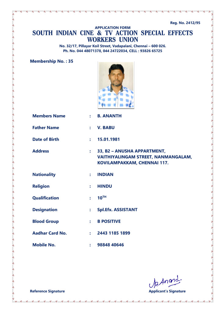 SOUTH INDIAN CINE & TV ACTION SPECIAL EFFECTS WORKERS UNION