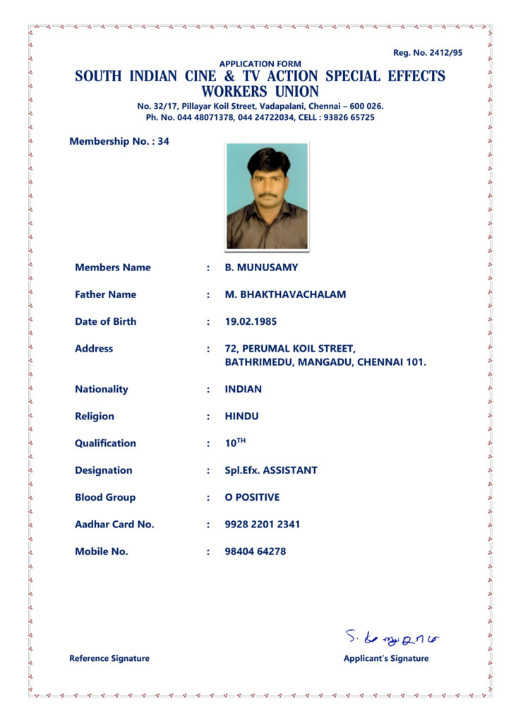 SOUTH INDIAN CINE & TV ACTION SPECIAL EFFECTS WORKERS UNION