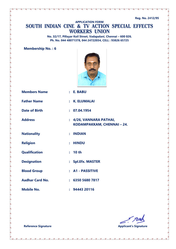 SOUTH INDIAN CINE & TV ACTION SPECIAL EFFECTS WORKERS UNION
