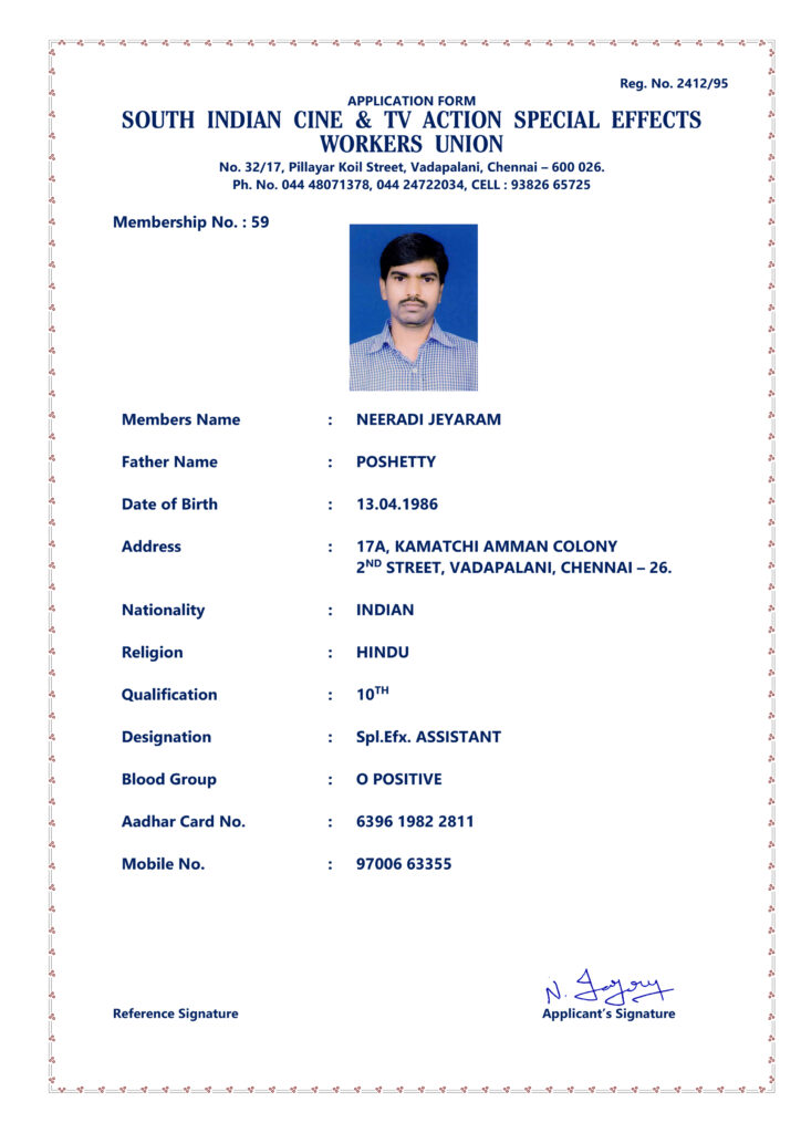 SOUTH INDIAN CINE & TV ACTION SPECIAL EFFECTS WORKERS UNION