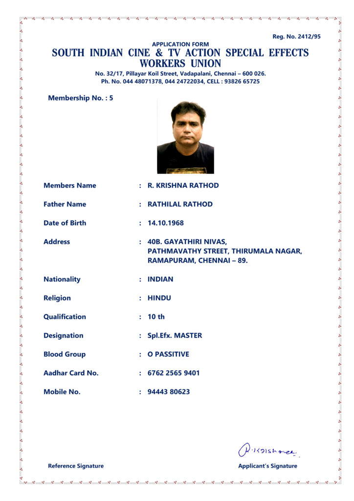 SOUTH INDIAN CINE & TV ACTION SPECIAL EFFECTS WORKERS UNION