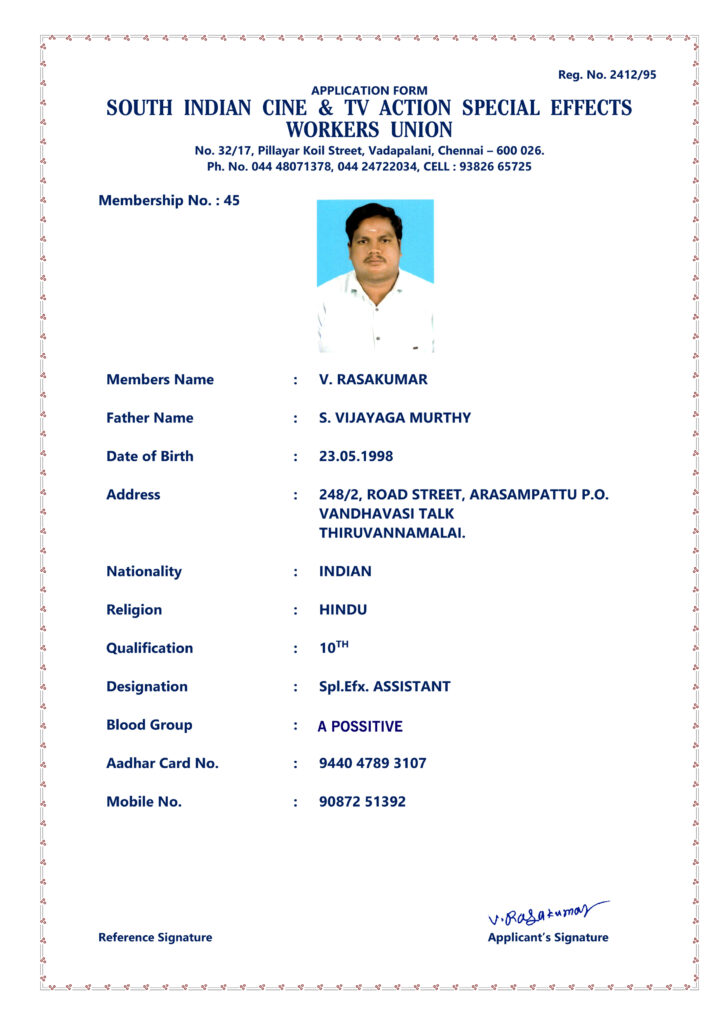 SOUTH INDIAN CINE & TV ACTION SPECIAL EFFECTS WORKERS UNION